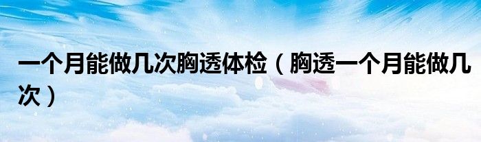 大家好,linda来为大家解答以上的问题。一个月能做几次胸透体检,胸透一个月能做几次很多人还不知道,现在让我们一起来看看吧!