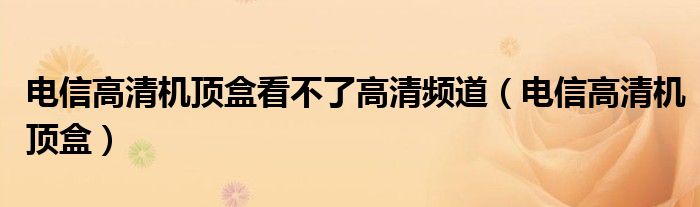 大家好,来宝来为大家解答以下问题,电信高清机顶盒看不了高清频道,电信高清机顶盒很多人还不知道,今天让我们一起来看看吧!