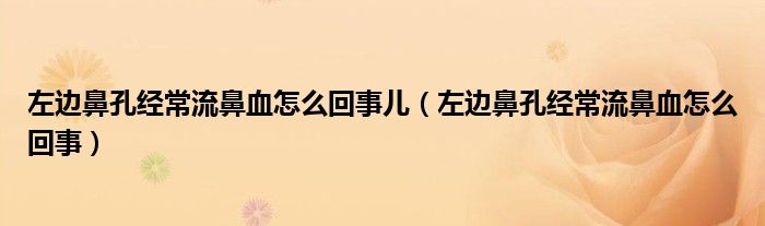 大家好,linda来为大家解答以上的问题。左边鼻孔经常流鼻血怎么回事儿,左边鼻孔经常流鼻血怎么回事很多人还不知道,现在让我们一起来看看吧!
