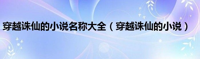 大家好,小晋来为大家解答以下问题,关于穿越诛仙的小说名称大全,穿越诛仙的小说很多人还不知道,今天让我们一起来看看吧!