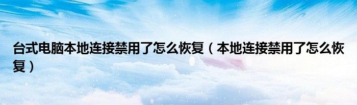 大家好,小晋来为大家解答以下问题,关于台式电脑本地连接禁用了怎么恢复,本地连接禁用了怎么恢复很多人还不知道,今天让我们一起来看看吧!