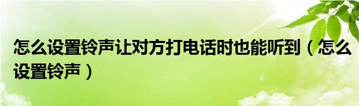 大家好,小晋来为大家解答以下问题,关于怎么设置铃声让对方打电话时也能听到,怎么设置铃声很多人还不知道,今天让我们一起来看看吧!