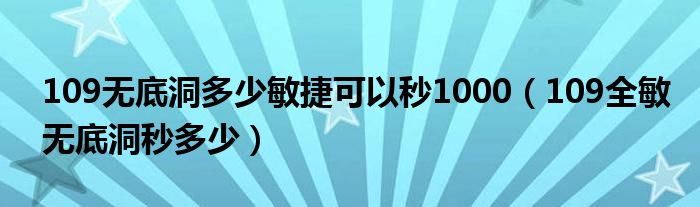 大家好,小晋来为大家解答以下问题,关于109无底洞多少敏捷可以秒1000,109全敏无底洞秒多少很多人还不知道,今天让我们一起来看看吧!
