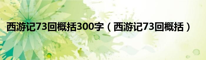 大家好,小晋来为大家解答以下问题,关于西游记73回概括300字,西游记73回概括很多人还不知道,今天让我们一起来看看吧!