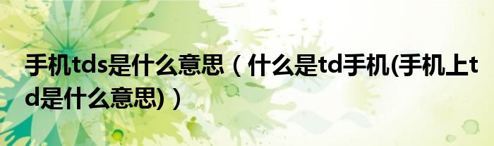 大家好,小常来为大家解答以上问题。手机tds是什么意思,什么是td手机(手机上td是什么意思)很多人还不知道,现在让我们一起来看看吧!