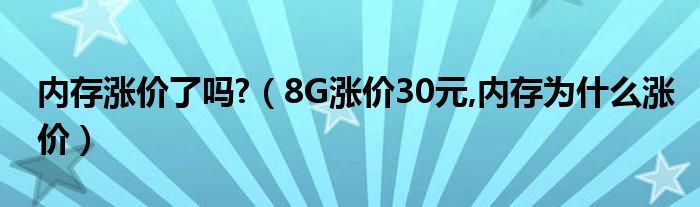 大家好,小常来为大家解答以上问题。内存涨价了吗?,8G涨价30元,内存为什么涨价很多人还不知道,现在让我们一起来看看吧!