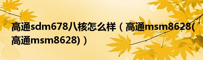 大家好,小常来为大家解答以上问题。高通sdm678八核怎么样,高通msm8628(高通msm8628)很多人还不知道,现在让我们一起来看看吧!