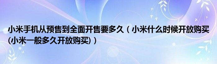 大家好,小常来为大家解答以上问题。小米手机从预售到全面开售要多久,小米什么时候开放购买(小米一般多久开放购买)很多人还不知道,现在让我们一起来看看吧!