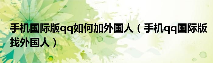 大家好,小晋来为大家解答以下问题,关于手机国际版qq如何加外国人,手机qq国际版找外国人很多人还不知道,今天让我们一起来看看吧!