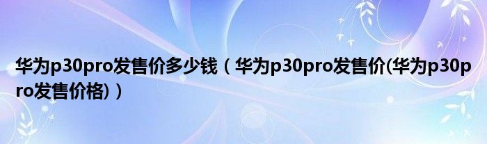 大家好,小常来为大家解答以上问题。华为p30pro发售价多少钱,华为p30pro发售价(华为p30pro发售价格)很多人还不知道,现在让我们一起来看看吧!