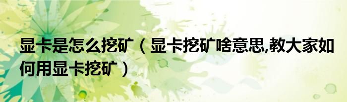 大家好,小常来为大家解答以上问题。显卡是怎么挖矿,显卡挖矿啥意思,教大家如何用显卡挖矿很多人还不知道,现在让我们一起来看看吧!