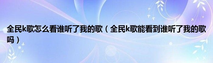 大家好,跳跳为你解答以上问题。全民k歌怎么看谁听了我的歌,全民k歌能看到谁听了我的歌吗这个问题很多人还不知道,现在让我们一起来看看吧!