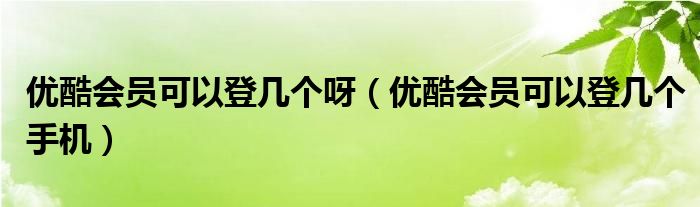 大家好,跳跳为你解答以上问题。优酷会员可以登几个呀,优酷会员可以登几个手机这个问题很多人还不知道,现在让我们一起来看看吧!