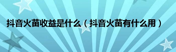 抖音火苗收益是什么(抖音火苗有什么用)