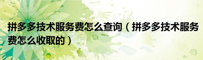 大家好,跳跳为你解答以上问题。拼多多技术服务费怎么查询,拼多多技术服务费怎么收取的这个问题很多人还不知道,现在让我们一起来看看吧!