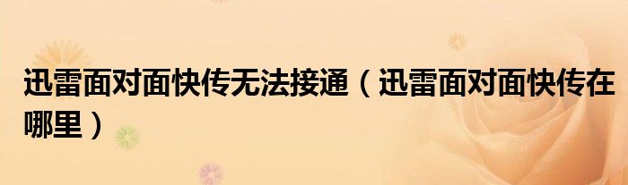 大家好,跳跳为你解答以上问题。迅雷面对面快传无法接通,迅雷面对面快传在哪里这个问题很多人还不知道,现在让我们一起来看看吧!