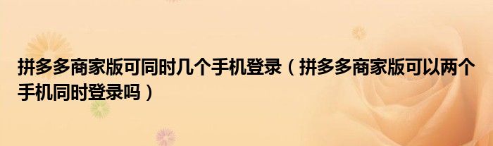 大家好,跳跳为你解答以上问题。拼多多商家版可同时几个手机登录,拼多多商家版可以两个手机同时登录吗这个问题很多人还不知道,现在让我们一起来看看吧!