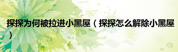 大家好,跳跳为你解答以上问题。探探为何被拉进小黑屋,探探怎么解除小黑屋这个问题很多人还不知道,现在让我们一起来看看吧!
