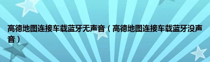 大家好,跳跳为你解答以上问题。高德地图连接车载蓝牙无声音,高德地图连接车载蓝牙没声音这个问题很多人还不知道,现在让我们一起来看看吧!