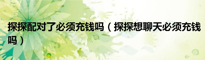 大家好,跳跳为你解答以上问题。探探配对了必须充钱吗,探探想聊天必须充钱吗这个问题很多人还不知道,现在让我们一起来看看吧!
