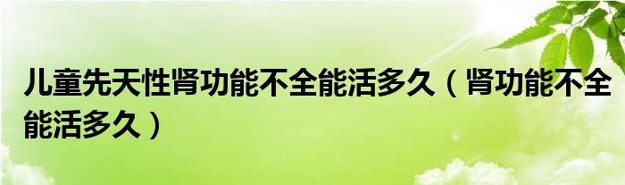 大家好,linda来为大家解答以上的问题。儿童先天性肾功能不全能活多久,肾功能不全能活多久很多人还不知道,现在让我们一起来看看吧!