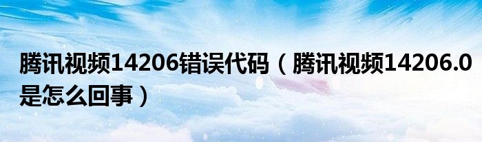 大家好,跳跳为你解答以上问题。腾讯视频14206错误代码,腾讯视频14206.0是怎么回事这个问题很多人还不知道,现在让我们一起来看看吧!