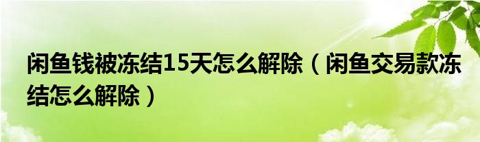 闲鱼钱被冻结15天怎么解除(闲鱼交易款冻结怎么解除)