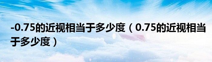 大家好,linda来为大家解答以上的问题。-0.75的近视相当于多少度,0.75的近视相当于多少度很多人还不知道,现在让我们一起来看看吧!
