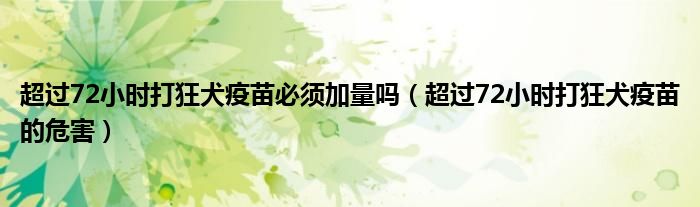 大家好,linda来为大家解答以上的问题。超过72小时打狂犬疫苗必须加量吗,超过72小时打狂犬疫苗的危害很多人还不知道,现在让我们一起来看看吧!