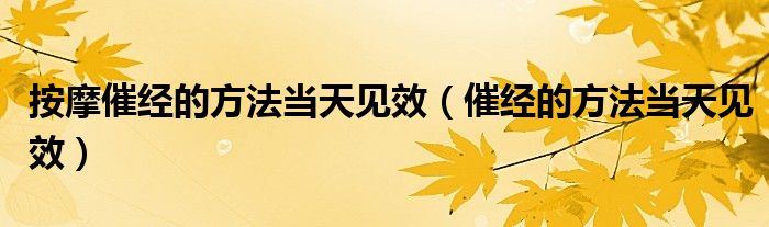 大家好,linda来为大家解答以上的问题。按摩催经的方法当天见效,催经的方法当天见效很多人还不知道,现在让我们一起来看看吧!