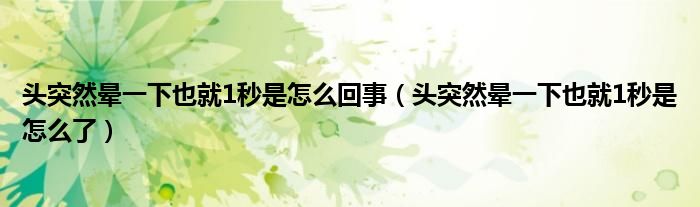 大家好,linda来为大家解答以上的问题。头突然晕一下也就1秒是怎么回事,头突然晕一下也就1秒是怎么了很多人还不知道,现在让我们一起来看看吧!