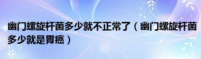大家好,linda来为大家解答以上的问题。幽门螺旋杆菌多少就不正常了,幽门螺旋杆菌多少就是胃癌很多人还不知道,现在让我们一起来看看吧!