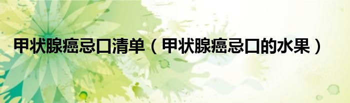 大家好,linda来为大家解答以上的问题。甲状腺癌忌口清单,甲状腺癌忌口的水果很多人还不知道,现在让我们一起来看看吧!