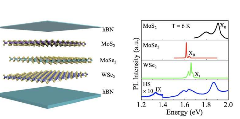 该团队能够制造出三层TMD异质结构(由钼和硫、钼和硒、钨和硒组成),然后他们使用光致发光光谱对其进行了观察。他们证实了层间激子的存在,并描述了该现象的各种特性和要求。