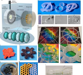 研究人员对一种用于增材制造的聚合物进行了实验,这种聚合物称为聚二甲基硅氧烷(PDMS)。他们使用换能器产生超声波场,该超声波场穿过构建材料的外壳并固化目标液态树脂并将其沉积到平台或其他先前固化的物体上。换能器沿预定路径移动,最终逐个像素地创建所需的产品。微结构的参数可以通过调整超声波频率的持续时间和所用材料的粘度来控制。