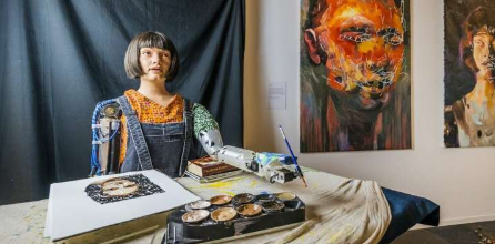 艾达被吹捧为“第一个像艺术家一样绘画的机器人”,她的作品展览名为“跃入元宇宙”,在威尼斯双年展上开幕。