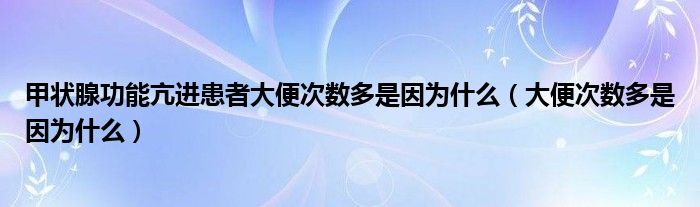 大家好,linda来为大家解答以上的问题。甲状腺功能亢进患者大便次数多是因为什么,大便次数多是因为什么很多人还不知道,现在让我们一起来看看吧!