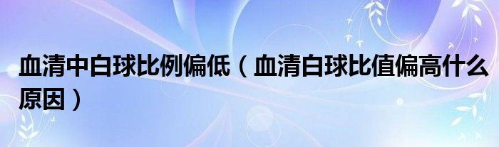 大家好,linda来为大家解答以上的问题。血清中白球比例偏低,血清白球比值偏高什么原因很多人还不知道,现在让我们一起来看看吧!