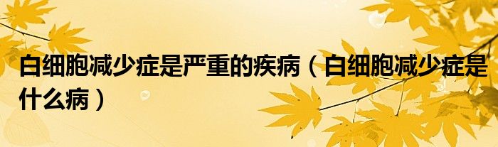 大家好,linda来为大家解答以上的问题。白细胞减少症是严重的疾病,白细胞减少症是什么病很多人还不知道,现在让我们一起来看看吧!