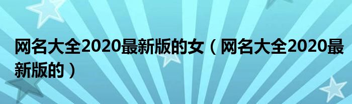 大家好,来宝来为大家解答以下问题,网名大全2020最新版的女,网名大全2020最新版的很多人还不知道,今天让我们一起来看看吧!