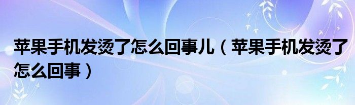 大家好,来宝来为大家解答以下问题,苹果手机发烫了怎么回事儿,苹果手机发烫了怎么回事很多人还不知道,今天让我们一起来看看吧!