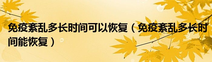 1、一般来说,免疫紊乱的恢复时间在治疗后1-2年左右。