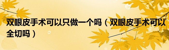 大家好,linda来为大家解答以上的问题。双眼皮手术可以只做一个吗,双眼皮手术可以全切吗很多人还不知道,现在让我们一起来看看吧!