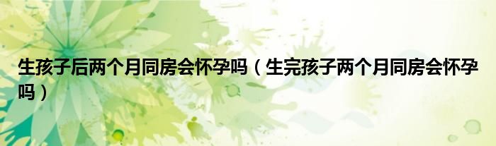 大家好,linda来为大家解答以上的问题。生孩子后两个月同房会怀孕吗,生完孩子两个月同房会怀孕吗很多人还不知道,现在让我们一起来看看吧!