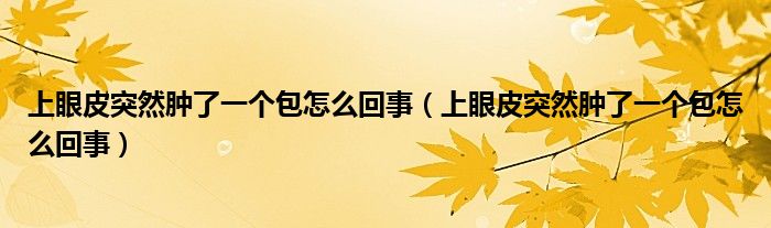 大家好,linda来为大家解答以上的问题。上眼皮突然肿了一个包怎么回事,上眼皮突然肿了一个包怎么回事很多人还不知道,现在让我们一起来看看吧!