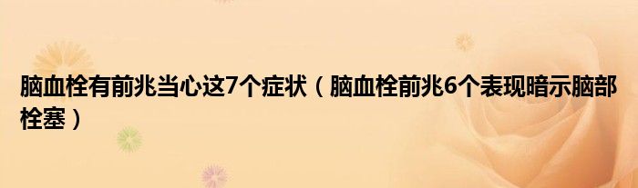 大家好,linda来为大家解答以上的问题。脑血栓有前兆当心这7个症状,脑血栓前兆6个表现暗示脑部栓塞很多人还不知道,现在让我们一起来看看吧!