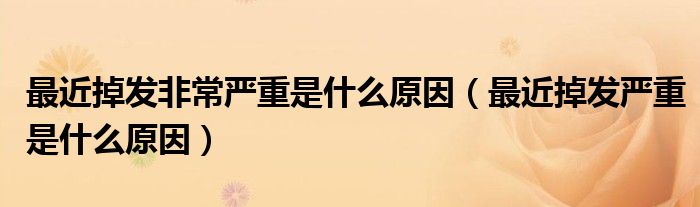 大家好,linda来为大家解答以上的问题。最近掉发非常严重是什么原因,最近掉发严重是什么原因很多人还不知道,现在让我们一起来看看吧!