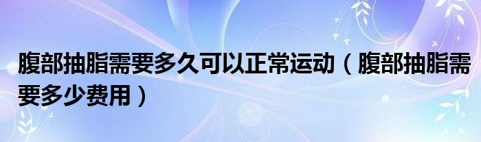 大家好,linda来为大家解答以上的问题。腹部抽脂需要多久可以正常运动,腹部抽脂需要多少费用很多人还不知道,现在让我们一起来看看吧!