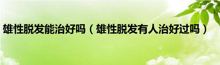 大家好,linda来为大家解答以上的问题。雄性脱发能治好吗,雄性脱发有人治好过吗很多人还不知道,现在让我们一起来看看吧!