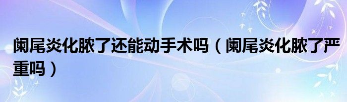 大家好,linda来为大家解答以上的问题。阑尾炎化脓了还能动手术吗,阑尾炎化脓了严重吗很多人还不知道,现在让我们一起来看看吧!